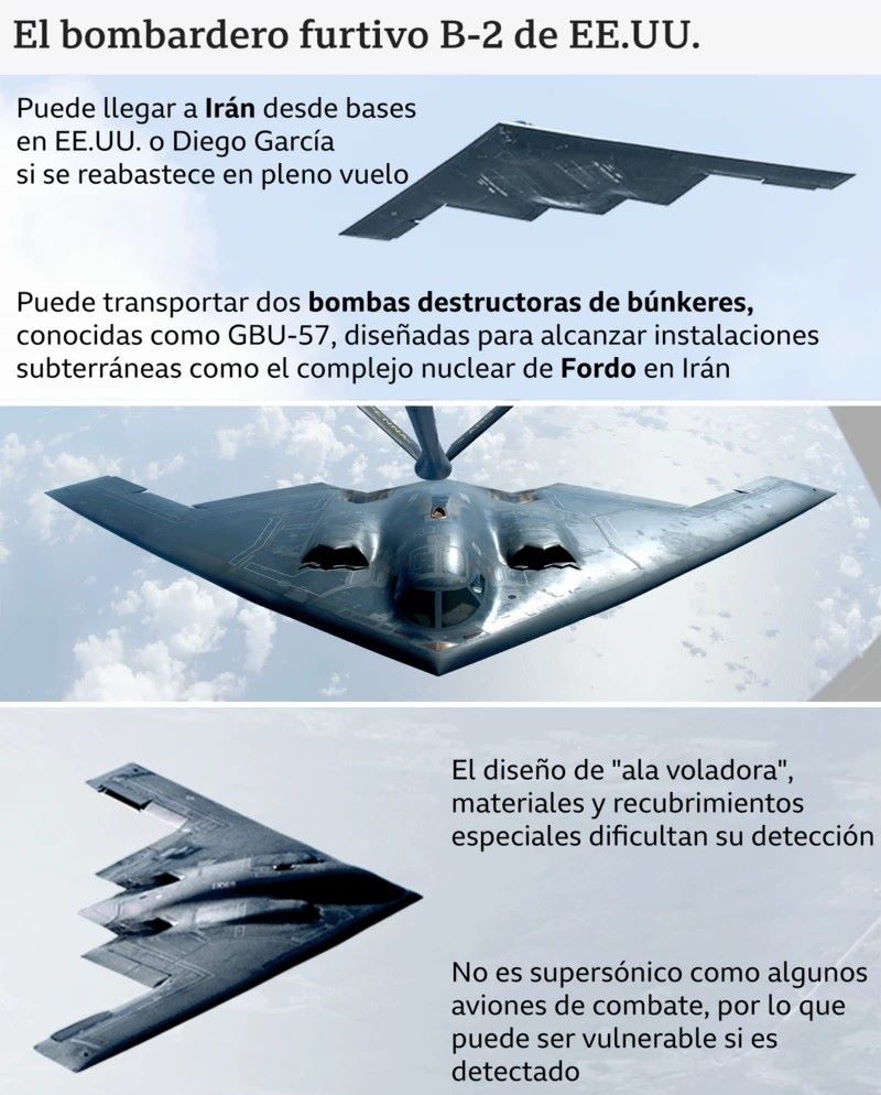 Este domingo Washington confirmó que se usaron bombarderos furtivos estratégicos B-2.