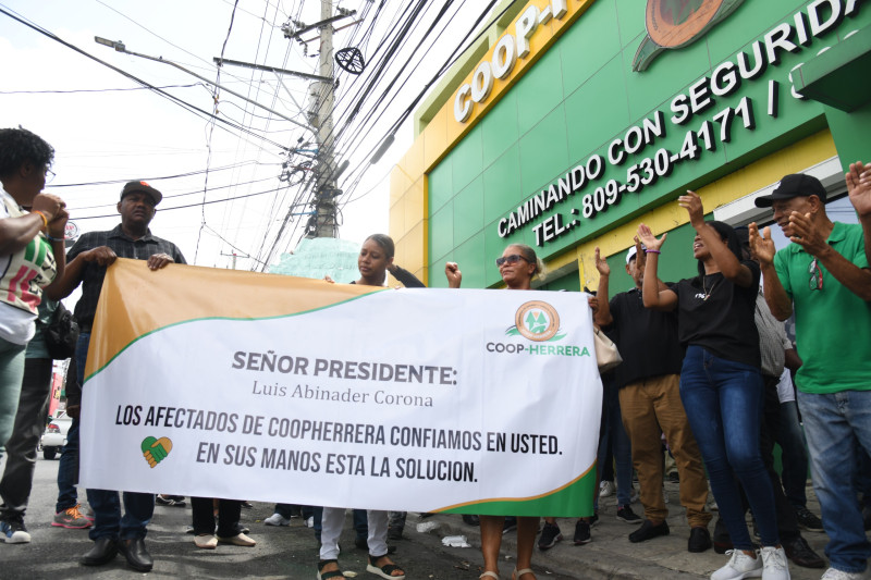 Un grupo de ahorrantes de la Cooperativa de Herrera (Coop-Herrera) se concentró frente al Palacio Nacional, para exigir al Gobierno la devolución de los fondos que, según denuncian, fueron sustraídos de manera ilícita.