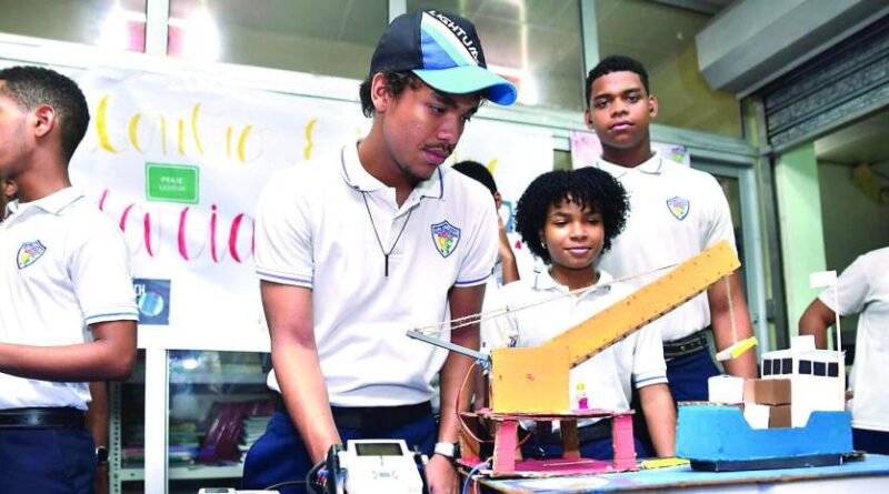 Robots armados de bloques y maquetas hechos a base de materiales reciclables, como el cartón y las botellas plásticas, era parte de la dinámica que escogieron para mostrar las ideas exhibidas en diferentes de mesas establecidas en el salón de la Escuela Excelencia República de Colombia, donde fue realizada la jornada, organizada por el distrito educativo 15-02.