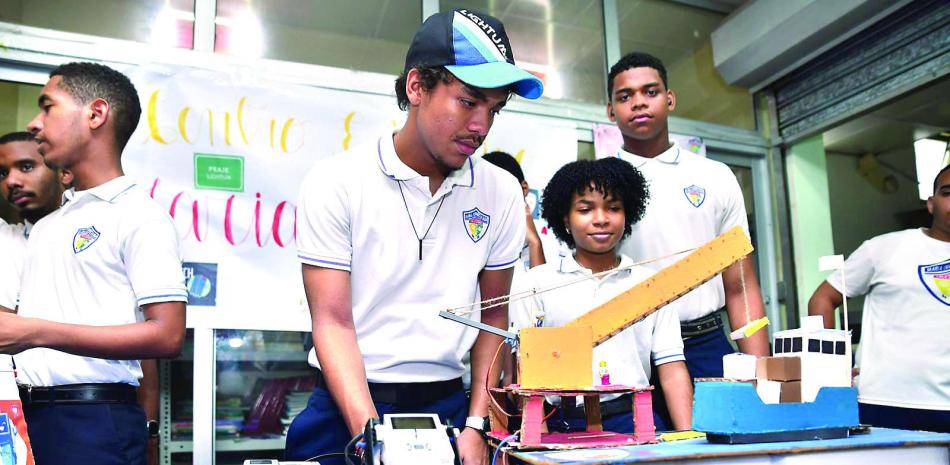 Robots armados de bloques y maquetas hechos a base de materiales reciclables, como el cartón y las botellas plásticas, era parte de la dinámica que escogieron para mostrar las ideas exhibidas en diferentes de mesas establecidas en el salón de la Escuela Excelencia República de Colombia, donde fue realizada la jornada, organizada por el distrito educativo 15-02.