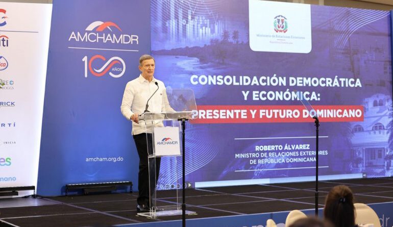 El Canciller de la República, Roberto Álvarez, destacó la importancia de la ciencia y la tecnología para el desarrollo del país y recomendó la creación de un Ministerio de Ciencia y Tecnología durante su discurso en el almuerzo mensual de la Cámara Americana de Comercio de la República Dominicana (AMCHAMDR), en presencia del presidente de la República, Luis Abinader.