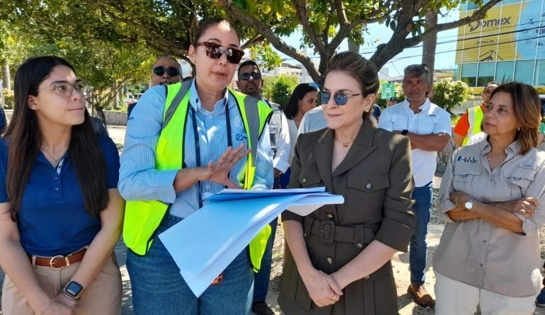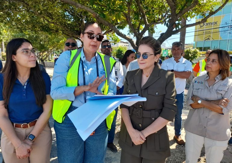 Carolina Mejía observa trabajos de remozamiento del parque Nuñez de Cáceres