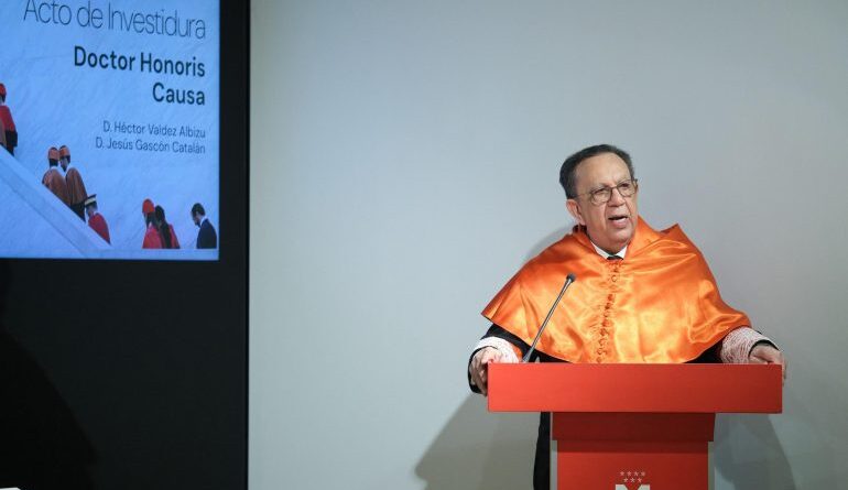 El gobernador del Banco Central de la República Dominicana (BCRD), Héctor Valdez Albizu, fue investido como Doctor Honoris Causa por la Universidad a Distancia de Madrid (UDIMA), en reconocimiento a su trayectoria ejemplar y sus aportes al desarrollo económico y la estabilidad macroeconómica del país.