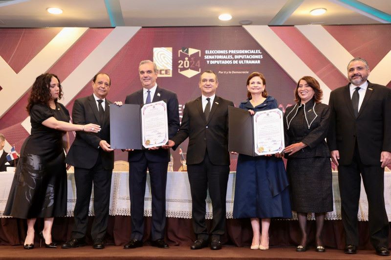 En un acto encabezado por el presidente de la JCE, Román Jáquez Liranzo, la institución electoral entregó los diplomas por su nuevo triunfo a los actuales presidente y vicepresidente, Luis Abinader y Raquel Peña, respectivamente, quienes asumieron la victoria por los más de 2.5 millones de votos alcanzados en las elecciones Presidenciales y Congresuales del 19 de febrero.