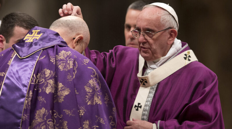 El sacerdote impone cenizas durante el inicio de la Cuaresma, el Miércoles de Ceniza.