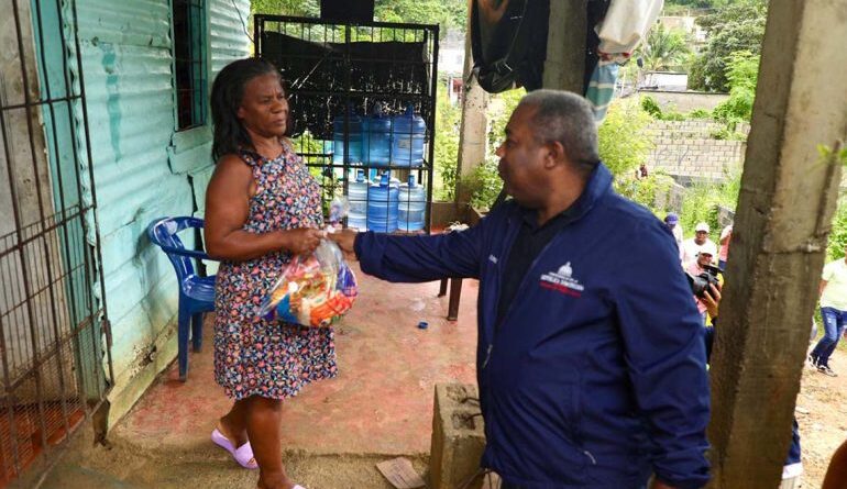 Durante este fin de semana, Peña encabezó las jornadas de entrega de raciones alimenticias, artículos de primera necesidad y acompañamiento social en sectores como Los Mina, Santo Domingo Norte y Los Alcarrizos, donde cientos de familias resultaron impactadas por las intensas lluvias.