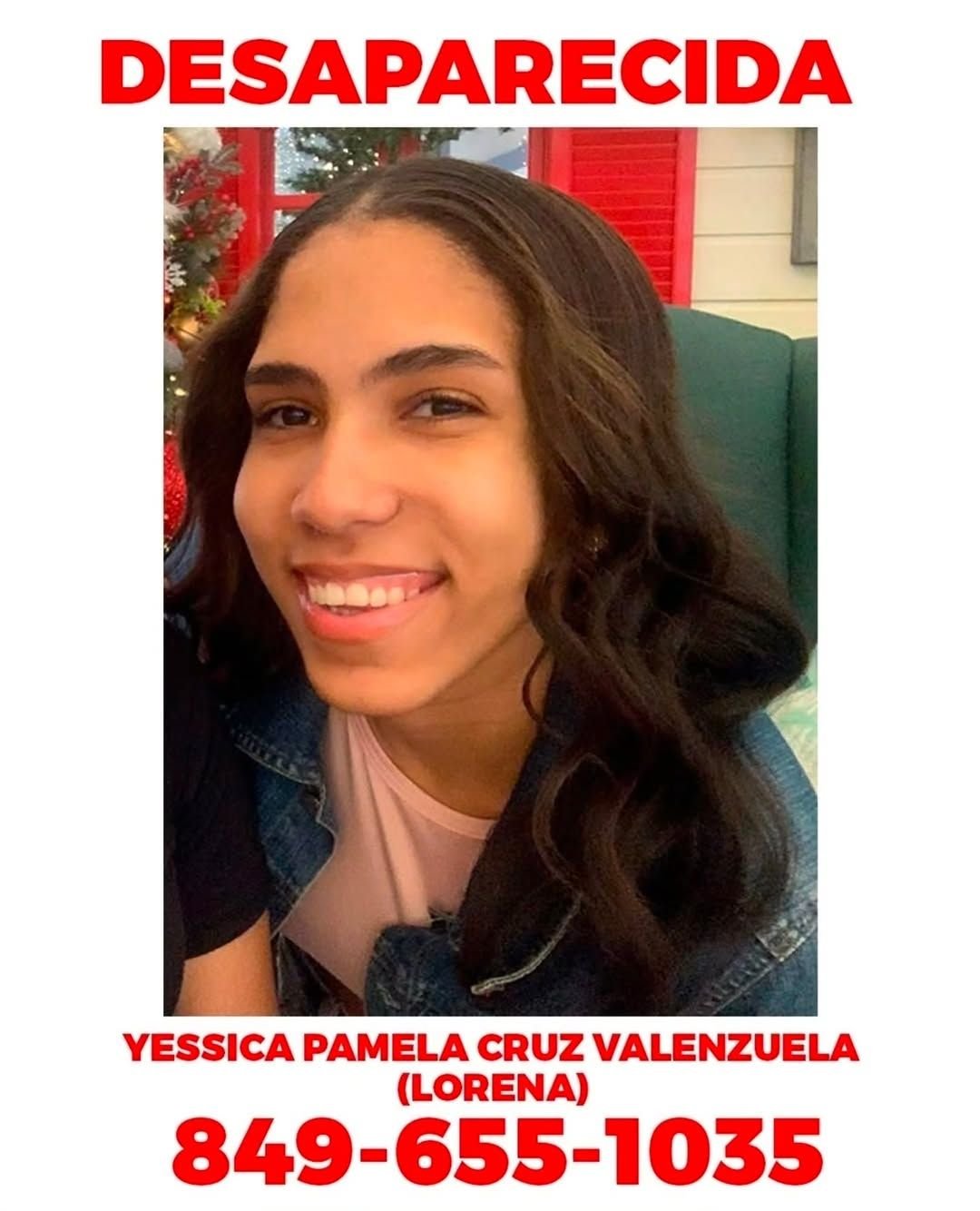 Jessica Pamela Cruz Venezuela, mejor conocida como Lorena, se encuentra desaparecida, ella es de Santo Domingo