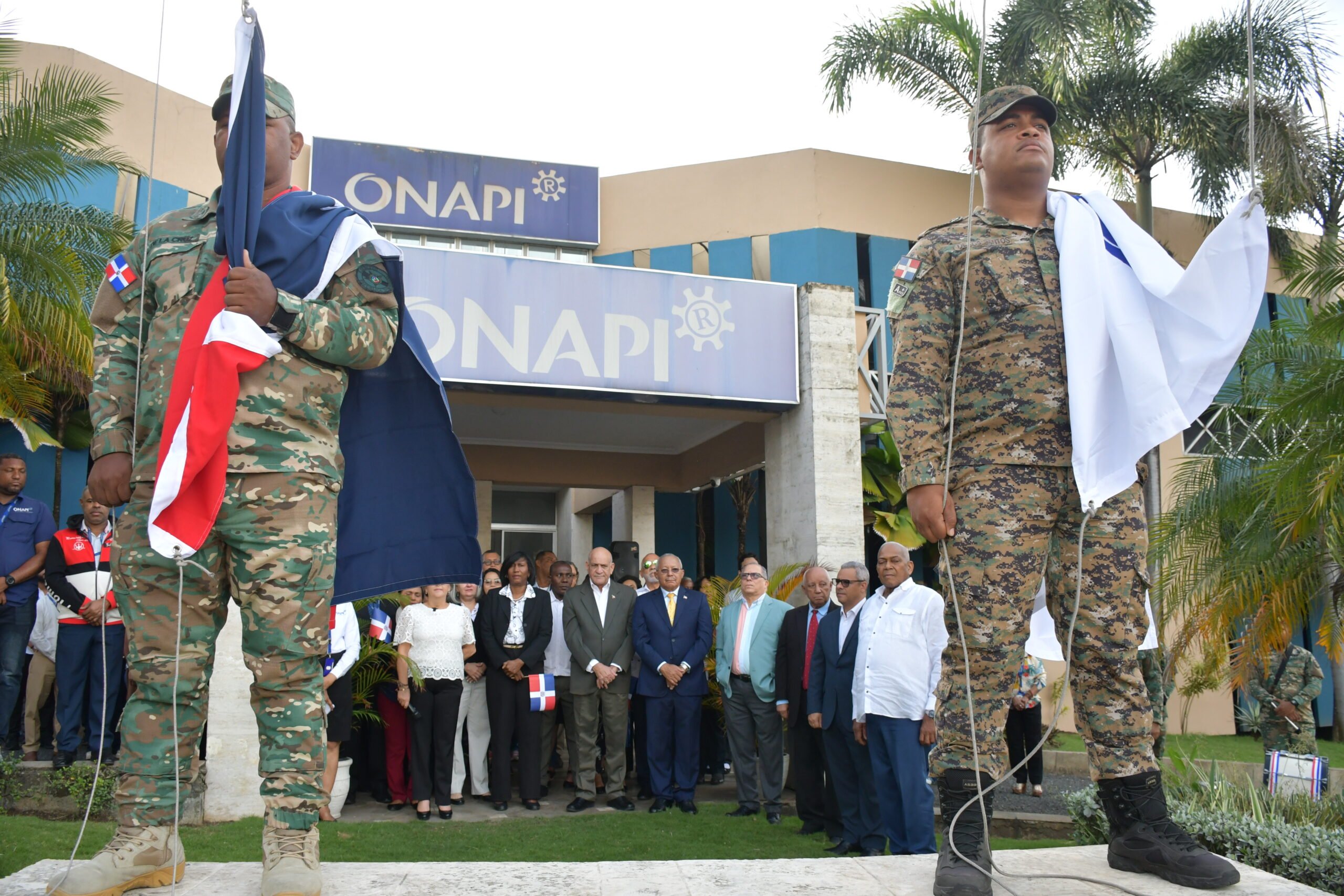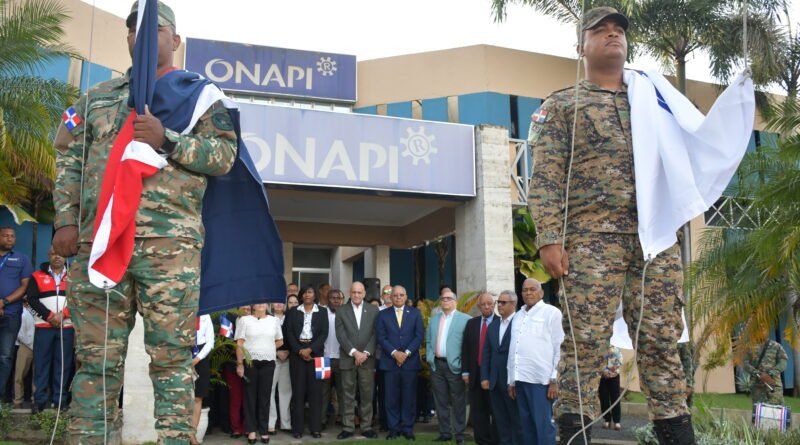 ONAPI realiza acto de izamiento de la bandera nacional al conmemorarse 182 años de la independencia con la participación dinámica de estudiantes