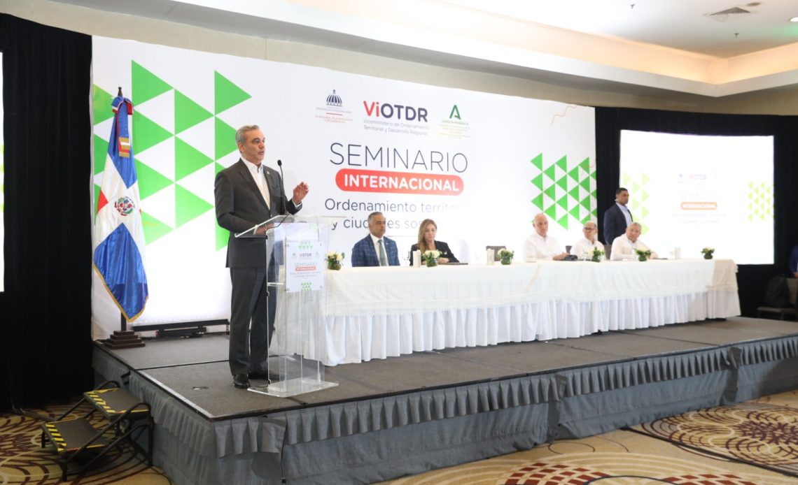 “Continuaremos apoyando al Ministerio de Economía, Planificación y Desarrollo, en especial, para que acudan a garantizar ordenamiento en los territorios que significan más retos, como lo son Verón y Moca”, precisó el primer mandatario, al tiempo de solicitar a los alcaldes y las alcaldesas apoyo para concretar la ley 368-22, durante el acto de apertura del “Seminario internacional sobre ordenamiento territorial y ciudades sostenibles”, organizado por el Ministerio de Economía, a través del Viceministerio de Ordenamiento Territorial y Desarrollo Regional (VIOTDR).