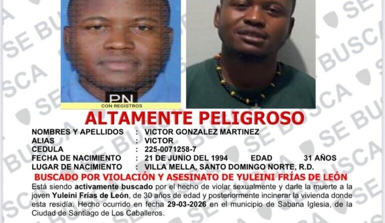 Se trata de Víctor González Martínez, de 31 años, quien, de acuerdo con el informe oficial, es señalado como el presunto responsable de la muerte de Yuleini Frías de León, de 30 años, a quien habría agredido sexualmente y posteriormente quitado la vida, para luego incendiar la vivienda donde residía. El hecho ocurrió el pasado 29 de marzo de 2026.