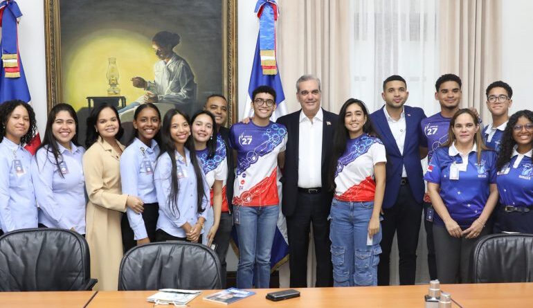 El presidente Luis Abinader recibió en el Palacio Nacional a 12 estudiantes de los niveles universitario y secundario que participan en el concurso anual NASA Human Exploration Rover Challenge, que organiza la Administración Nacional de Aeronáutica y el Espacio (NASA).