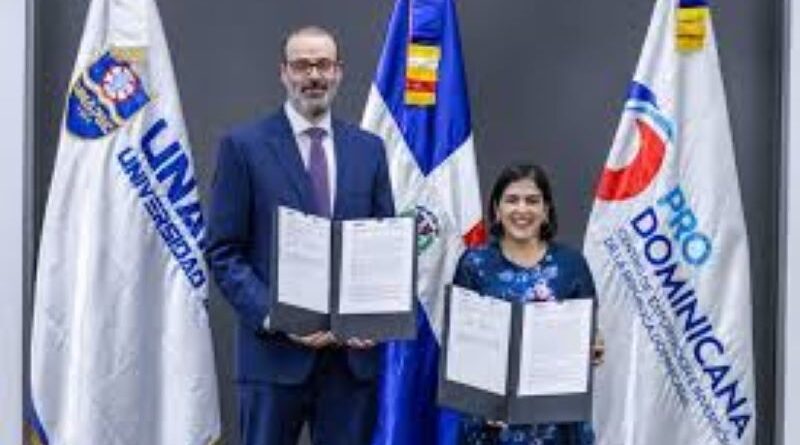 El Centro de Exportación e Inversión de la República Dominicana (ProDominicana) y la Universidad Unapec, firmaron un acuerdo de colaboración interinstitucional, con el objetivo de continuar fortaleciendo la cooperación académica, la formación de talento humano y el desarrollo de iniciativas conjuntas que contribuyan a la competitividad del país en los mercados internacionales.