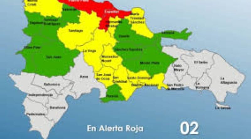 Entre las zonas en alerta amarilla figuran la provincia Santo Domingo (Gran Santo Domingo) y San Cristóbal.