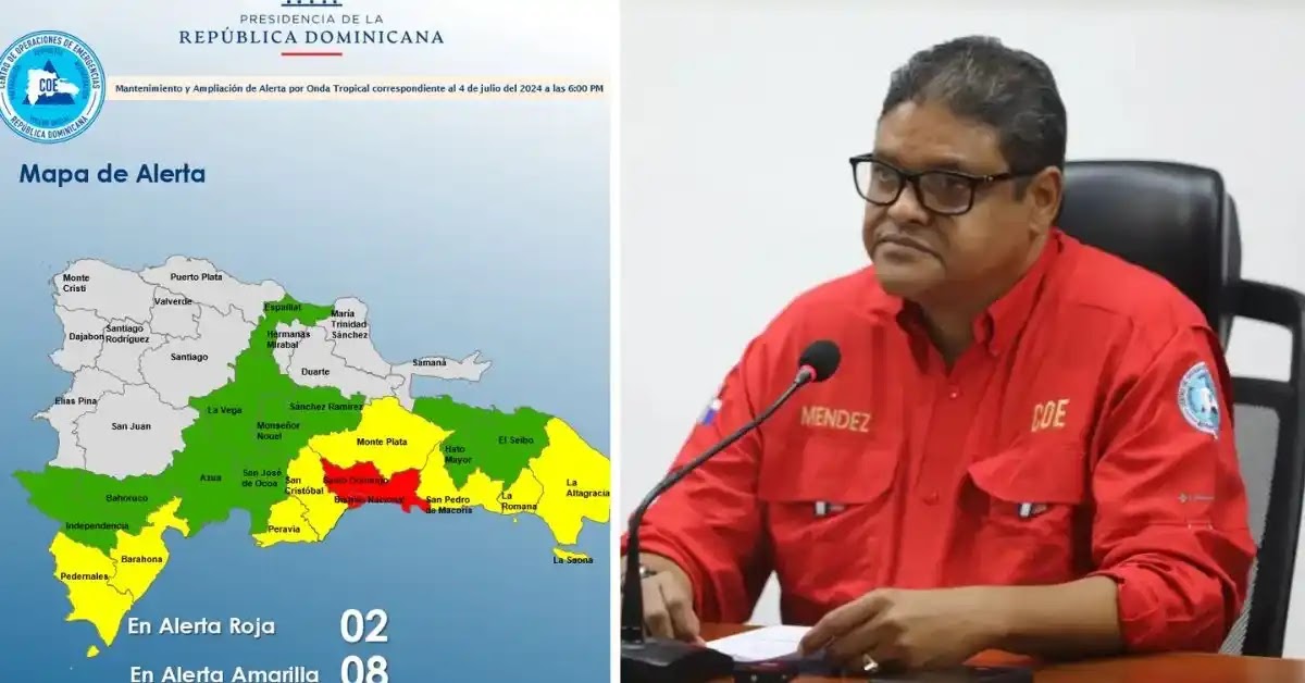 El Centro de Operaciones de Emergencias (COE), aumentó la alerta al Distrito Nacional y a la provincia Santo Domingo, debido a las lluvias provocadas por una onda tropical localizada al sur de la isla.