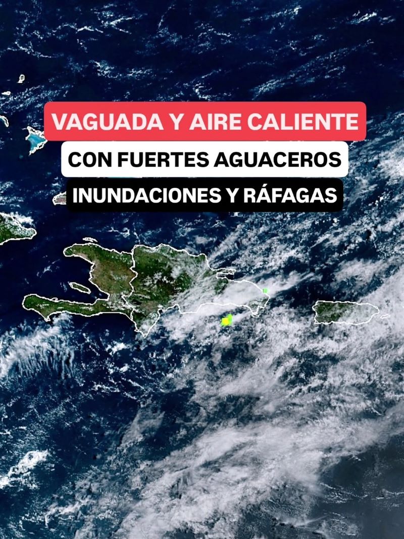 Los aguaceros entre moderados y fuertes se activarán desde esta tarde en el Gran Santo Domingo debido a la interacción de la vaguada y aire muy caliente en el Mar Caribe: podrían desarrollarse inundaciones repentinas, ráfagas de viento y descargas eléctricas.