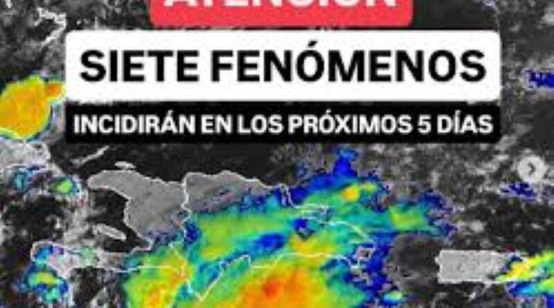 El peligro no ha pasado en República Dominicana: debemos estar muy atentos a la evolución de siete fenómenos atmosféricos que incidirán en los próximos cinco días en la región caribeña: dos bajas presiones, dos vaguadas, dos ondas tropicales y un sistema frontal mantendrán el panorama lluvioso en el país.