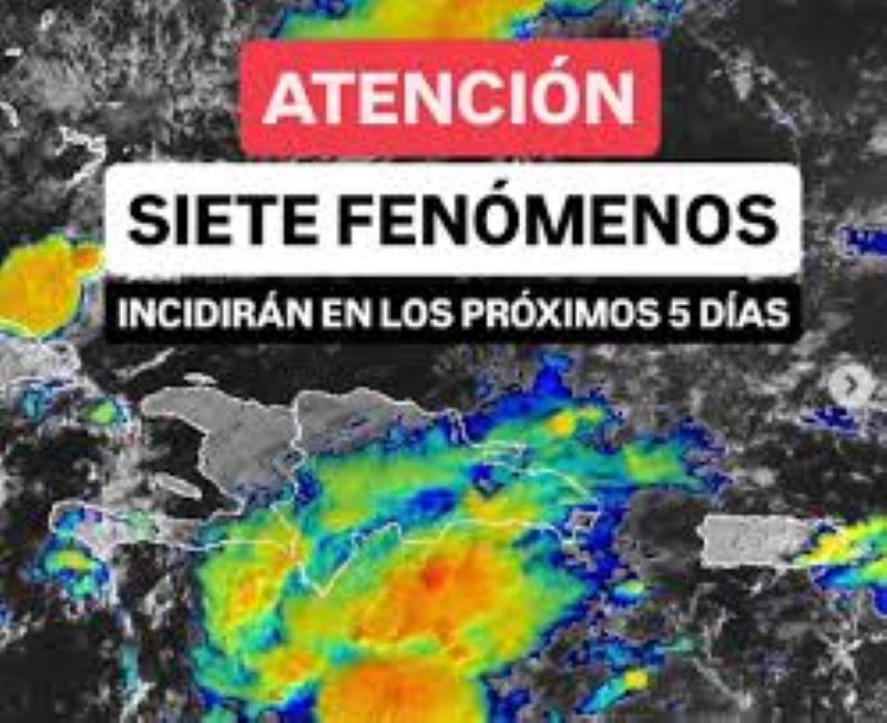 El peligro no ha pasado en República Dominicana: debemos estar muy atentos a la evolución de siete fenómenos atmosféricos que incidirán en los próximos cinco días en la región caribeña: dos bajas presiones, dos vaguadas, dos ondas tropicales y un sistema frontal mantendrán el panorama lluvioso en el país.