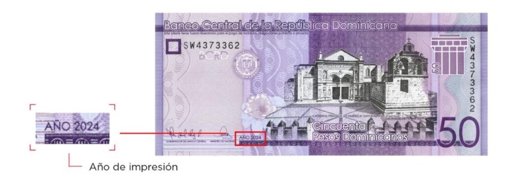 Estos billetes, cuya fabricación se ordenó mediante licitación pública internacional en abril de 2024, contienen las mismas características de seguridad de los billetes de RD$50.00 actualmente en circulación, los cuales mantendrán su fuerza liberatoria para el pago de todas las obligaciones públicas y privadas.