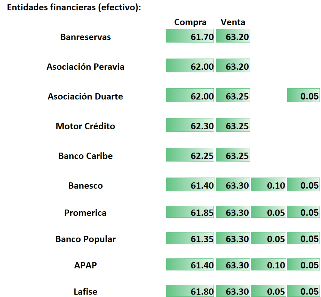 Economía Tasas de cambio en entidades financieras y agencias de cambio en RD hoy viernes 21 de marzo de 2025 marzo 21, 2025 Si te gustó, comparte esto!!