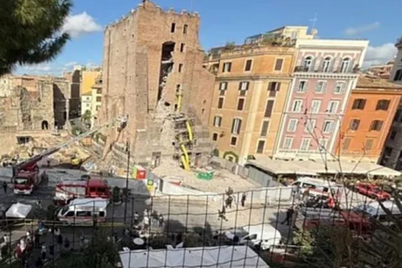 Una parte de la Torre dei Conti, una construcción medieval situada en el centro de Roma, cerca de los Foros Imperiales, se derrumbó este lunes mientras se realizaban trabajos de restauración, lo que obligó a los bomberos a rescatar a cinco operarios, uno de ellos en estado grave.