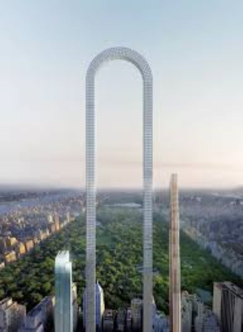 El estudio de arquitectura Oiio ha presentado el diseño de The Big Bend, un edificio en forma de U invertida que alcanzaría los 1.200 metros de longitud, superando en 300 metros al icónico Burj Khalifa de Dubái. Este diseño busca sortear las estrictas leyes de planificación urbanística de la ciudad al extenderse horizontalmente en lugar de elevarse de manera tradicional.