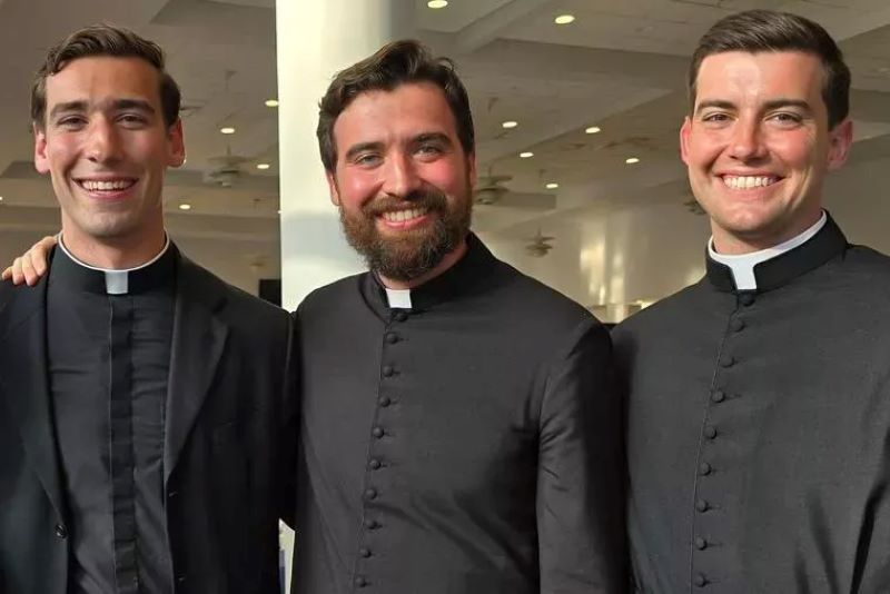 De izquierda a derecha: El Padre Danny, antes de su ordenación, el Padre James y el Padre Nicholas Morrison. Foto: Cortesía de la familia Morrison.